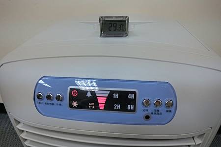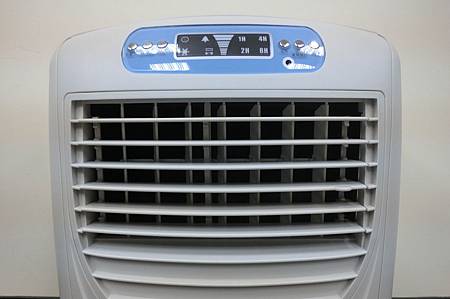 【勳風】移動式水冷氣有搭配遙控器使用,機體上的操作面板有液晶顯示溫度與各項功能指示燈,操作按鈕也非常簡單。